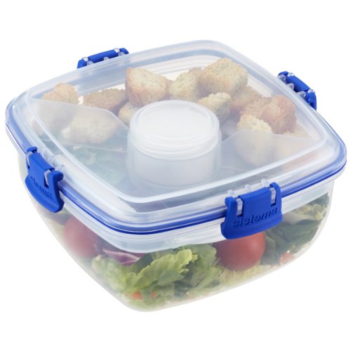 Container Store , Eating healthy when you're on the move just got easier with our Klip-It Salad-to-Go. It features a generously sized main bowl for salad, a separate cup for dressing and two lift-out compartments for toppings. It even includes a snap-in fork and spoon! Its compact size fits into a purse or backpack. An airtight lid prevents spills and ensures freshness.||Made from durable polypropylene | Silicone-seal lid | Easy-open lid | Refrigerator-, freezer-, microwave- and top rack dishwasher-safe