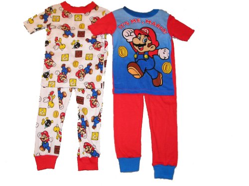 Nintendo Super Mario, Adding some classic gaming style to bedtime has never been easier! This set includes four mix-and-match pieces that form two complete pajama sets for boys' sizes 4 - 10. Red set features red pants with blue trim, and a red shirt with blue Mario design on the front. White set features white pants and shirt with all-over Mario themed design. All garments are 100% cotton and should fit snugly, as they are not flame resistant.